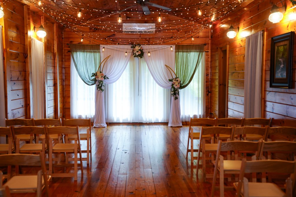 Our charming wedding chapel is located on the main grounds upstairs in our barn. When you walk inside, it is more like a cozy Smoky Mountain cabin with its pine walls. Chapels were the very first wedding venues in Pigeon Forge and Gatlinburg, and remain a popular, nostalgic choice to this day.